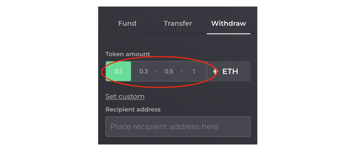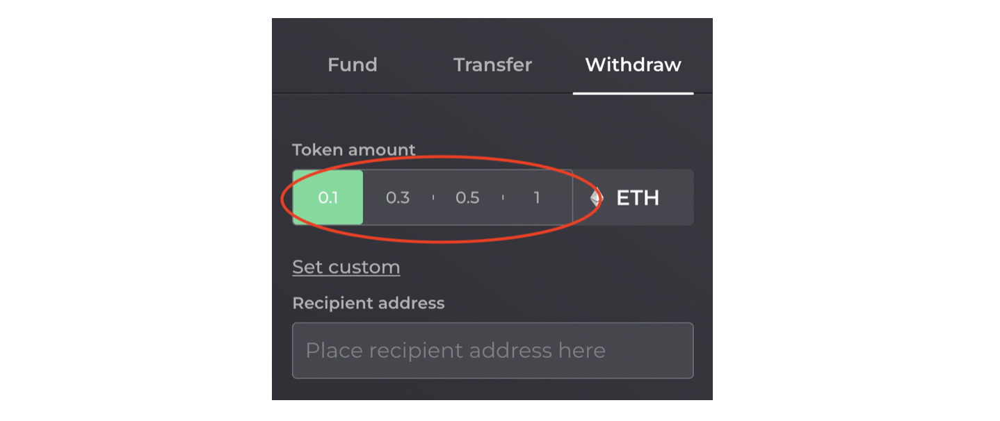You still have the freedom to Set custom to withdraw a customized amount of you choice. However, depending on the chosen amount, a connection might be deduced between your initial fund transaction and your withdrawal if: