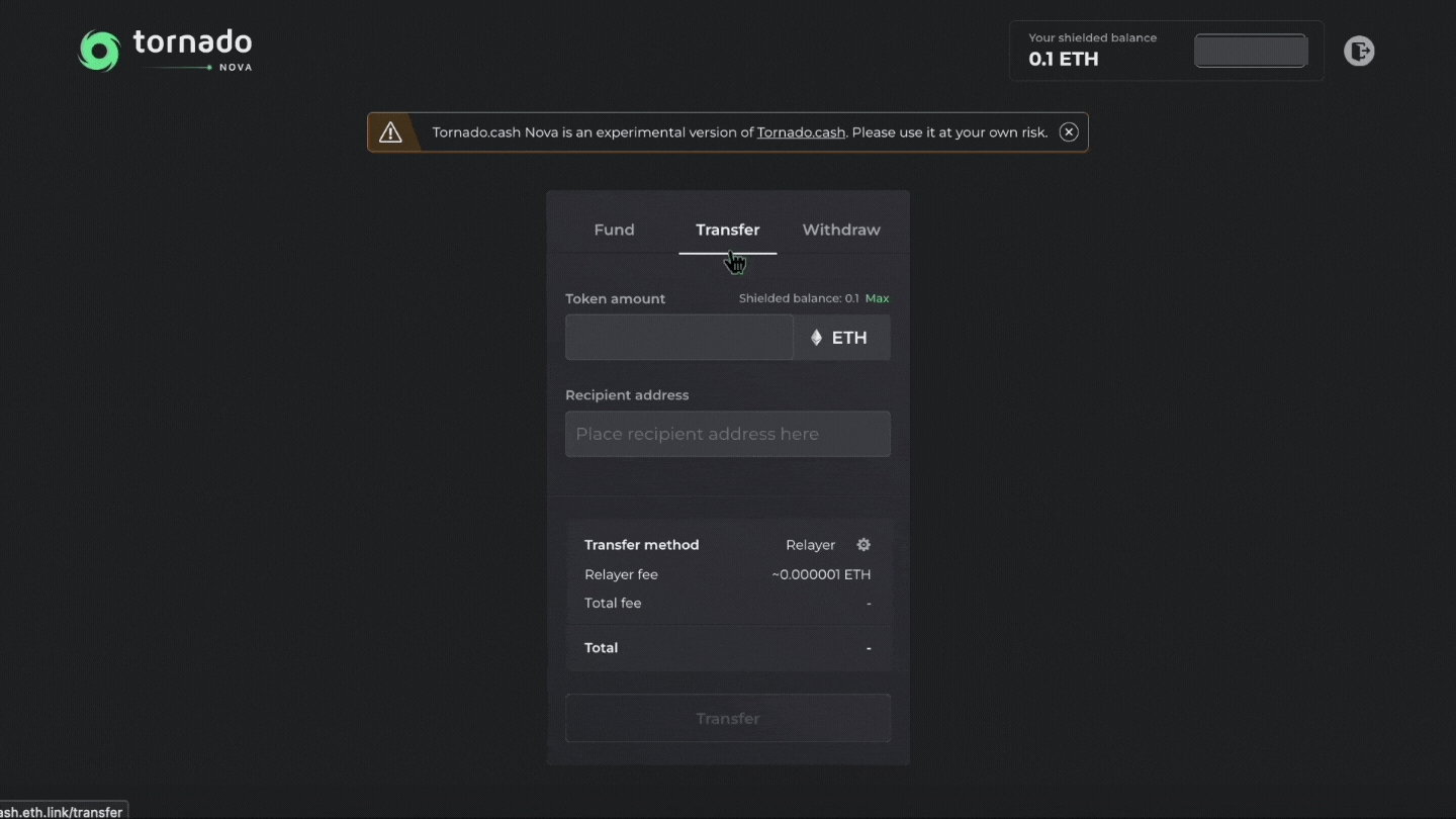 One of the specificity of Tornado Cash Nova is the introduction of shielded transfers. It allows shielded transactions of deposited tokens while staying within the pool.